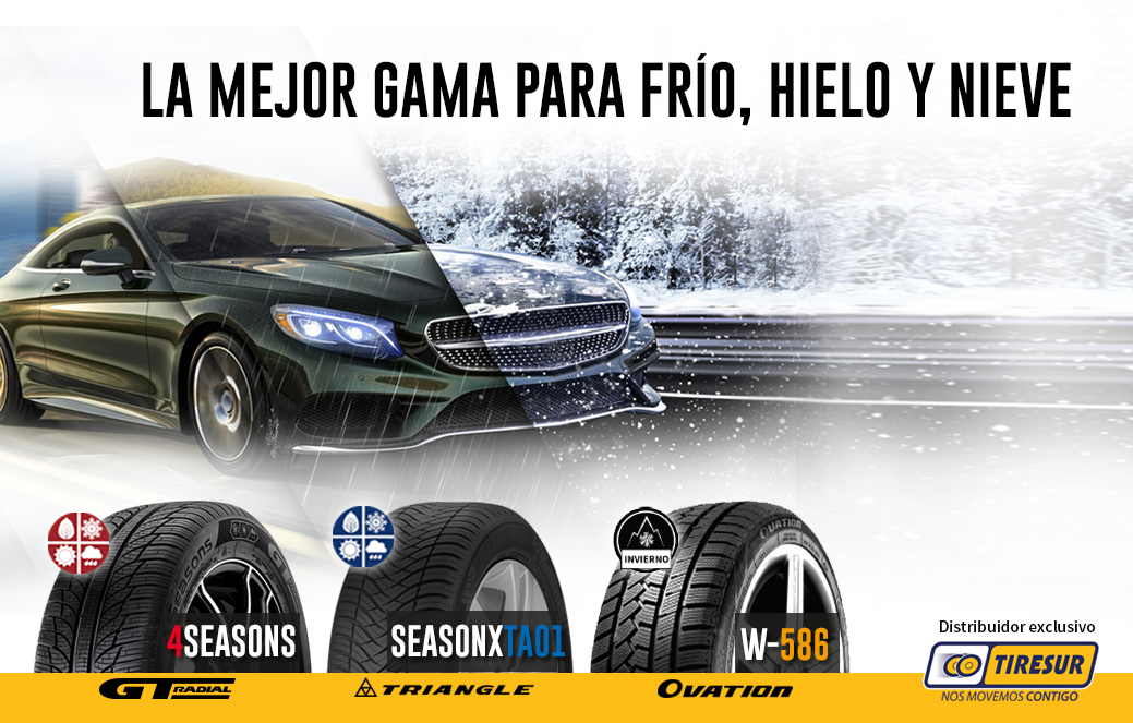 Por ello, Tiresur ha puesto especial acento en la ampliación de su gama 4 estaciones de sus marcas estrella de distribución exclusiva, Triangle y GT Radial, completándola con un competitivo portfolio de neumáticos específicos de invierno desarrollados por la marca Ovation, también de distribución exclusiva y disponibles para toda la familia PCR (turismo, SUV y vehículos comerciales).
